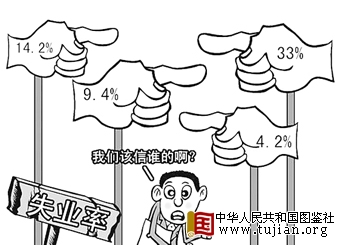 2008年12月16日中国社会科学院发布《社会蓝皮书》,称中国城镇失业率攀升到了9.4%,已经超过了7%的国际警戒线;但今年3月份人力资源和社会保障部却公布,去年我国城镇登记失业率仅是4.2%。这些数字相差如此之大,到底哪个更权威?事实上,国家统计局从2005年底就已经开始对城镇调查失业率进行试点,到目前为止共进行了7次失业调查,但至今没有对外发布数据。目前国务院作为判断经济形势决策的依据,依然采用的是人力资源和社会保障部提供的城镇登记失业率。业内人士对此颇有异议。