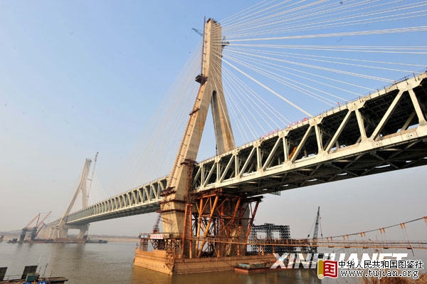 资料图片:2009年2月9日,武汉天兴洲公铁两用长江大桥首条货运铁路线全线铺通。新华社记者 杜华举 摄