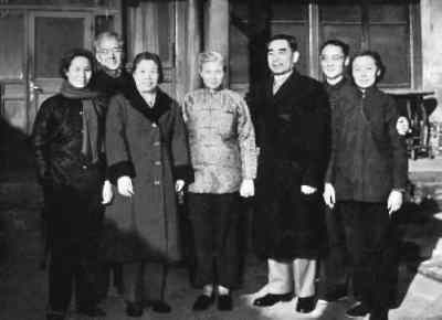 1961年在北京东四八条胡同朱启钤宅,左起为张颖、章以吴、邓颖超、罗婉容、周恩来、章文晋、章梅。