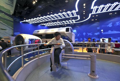 10月3日,小朋友在北京中国科学技术馆内参观体验。新华社发(梁志强 摄)