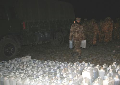 丽江军分区官兵积极备水继续清守火场(1月27日摄)。1月26日,云南玉龙县白沙乡辖区东山脚下发生森林火灾,玉龙县迅速启动了白沙乡森林火灾处置应急预案,先后调集了森警部队、内卫武警、消防武警、解放军、玉龙雪山管委会专业扑火队、玉龙县应急民兵队伍及机关干部职工近4000人参与扑火。28日凌晨1时,这场森林火灾的明火全部被扑灭,全面转入火场清守阶段。新华社发(姚成 摄)
