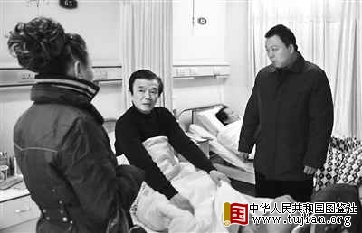 12月20日,武汉市江岸区总工会工作人员来到医院,看望身患重病的武汉帆布总厂职工袁德武,并送去慰问金2000元。武汉市总工会自12月中旬启动2009年送温暖活动以来,将低保边缘职工列为重点走访的四类群体之一。 孙方遒 摄 中华人民共和国图鉴社