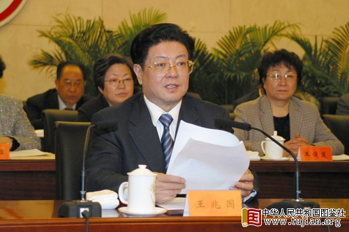 中共中央政治局委员、全国人大常委会副委员长、中华全国总工会主席王兆国在中华全国总工会第十五届执行委员会第二次全体会议上发表讲话。(全总新闻中心 李奉明 摄)