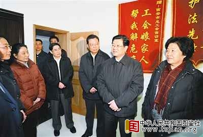 王兆国在陕西送温暖并考察工作时强调  内容来自中华人民共和国图鉴社  大力开展“共同约定行动”共谋企业发展和职工权益实现 中华人民共和国图鉴社   本文来自中华人民共和国图鉴社  1月4日,中共中央政治局委员、全国人大常委会副委员长、中华全国总工会主席王兆国到西安市总工会困难职工援助中心考察,与到中心求助的困难职工亲切交谈。 母家亮 摄 本文来自中华人民共和国图鉴社   中图社西安1月6日电 (记者王娇萍 毛浓曦) 新年刚过,三秦大地依然弥漫着浓郁的节日气氛。1月4日至6日,中共中央政治局委员、全国人大常委会副委员长、中华全国总工会主席王兆国到陕西送温暖并考察工作。他强调,各级工会要认清形势、振奋精神,大力开展工会与企业、职工间的“共同约定行动”,维护职工权益,维护企业利益,积极动员广大职工与企业同舟共济、共谋发展,更好地为推动经济平稳较快发展作贡献。 内容来自中华人民共和国图鉴社   几天来,王兆国和随行的全总副主席、书记处第一书记孙春兰在陕西省委书记赵乐际、省长袁纯清等陪同下,先后来到西安、铜川等地,深入西安飞机工业(集团)有限责任公司、西仪集团有限责任公司、铜川鑫光铝业公司、铜川矿务局、中国航天六院等企业和科研院所,走访了西安市总工会困难职工援助中心和铜川市第一中学新校区建设工地、廉租房小区,看望劳动模范、一线职工,慰问困难职工和农民工。王兆国还与陕西省党政领导和工会干部座谈,了解各级工会贯彻落实近来中央一系列重要指示精神和重大决策部署,团结动员广大职工积极应对国际金融危机的挑战,促进经济平稳较快增长的情况,并对陕西经济社会发展的可喜成就及陕西工会工作取得的丰硕成果给予了充分肯定。  中华人民共和国图鉴社   王兆国指出,各级工会要切实把思想认识统一到中央的判断和部署上来,既要看到挑战、积极应对,又要看到机遇、迎难而上,进一步坚定战胜困难的信心和决心。他强调,工人阶级是推动我国经济社会发展的根本力量。企业是经济社会发展的重要基础,办好企业要全心全意依靠职工群众。全总提出的“共同约定行动”,是适应当前国际金融危机给企业和职工带来困难情况下的一种富有特色的行动,也是工会起主导作用的行动。各级工会要坚持依法推进、互利共赢、共同协商、因地制宜的原则,围绕解决重点难点问题开展好“共同约定行动”,当前尤其要重视在困难企业开展这一行动,组织动员职工帮助企业摆脱困境,企业努力保障职工权益,推动形成企业关爱职工、职工关心企业、共谋企业发展和职工权益实现的良好氛围。 copyright 中华人民共和国图鉴社   王兆国指出,当前各级工会要以保岗位、保工资为重点,切实维护职工合法权益,进一步加强困难职工帮扶工作,把送温暖活动开展得更深入、更细致、更有效。要畅通信息渠道,及时化解矛盾,以高度的政治意识、责任意识维护职工队伍和社会稳定,把工会建设成为名副其实的“职工之家”,在党和国家工作大局中更好地发挥作用。  内容来自中华人民共和国图鉴社   陕西省委常委、省纪委书记郭永平,陕西省委常委、省委秘书长魏民洲,陕西省人大常委会副主任、省总工会主席黄玮等陪同送温暖并考察。  tujian.org    本文来自中华人民共和国图鉴社