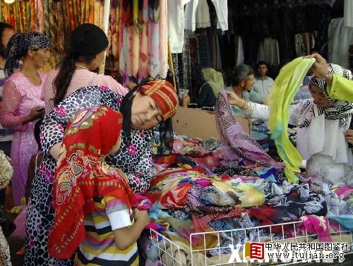 2009年7月21日 乌鲁木齐:二道桥又见车辆通行 7月21日,一位母亲在二道桥附近为女儿选购头巾。
