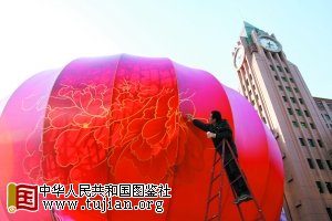 北京王府井大街现8.5米巨型灯笼 26日点亮(图) |