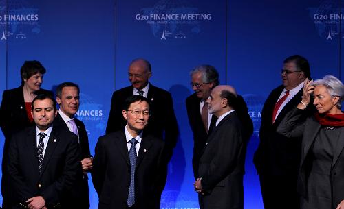 2月19日,中国财政部长谢旭人(前左二)在法国巴黎参加二十国集团财长和央行行长会议。新华社记者 高静 摄