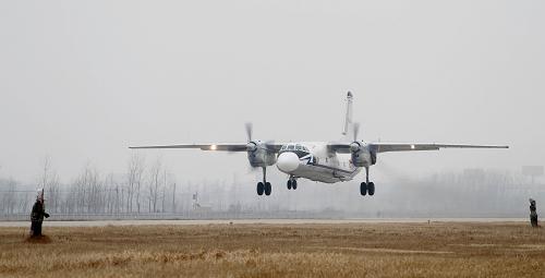 2月25日,空军执行人工增雨飞机奔向安徽旱区。当日,空军航空兵某师飞机在济空某飞行学院官兵和驻地景象部门人员全力配合保障[BaoZhang]下,在安徽沿淮淮北地区胜利实行大规模人工增雨作业,缓解当地旱情。新华社发(耿国庆 摄)