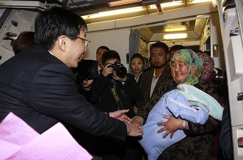 2月27日,抱着婴儿的张春兰第一个走下飞机,受到热烈欢迎。当日14时许,中国东方航空公司第一架撤离我在利比亚[LiBiYa]人员[RenYuan]包机MU268安全抵达上海[ShangHai]浦东国际机场。该航班共撤回272名滞留利比亚[LiBiYa]的中国公民,其中包含一名婴儿。第二架东航包机将于当日16时15分左右抵达上海[ShangHai]虹桥机场。新华社记者 裴鑫 摄