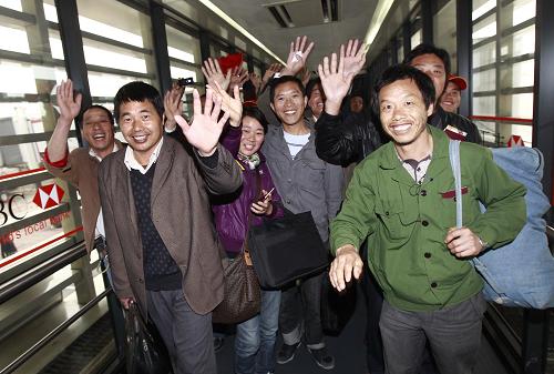 据了解,首批两架东航包机接回的是在利比亚[LiBiYa]承建当地工程的浙江宁波世纪华丰控股有限公司的人员[RenYuan]。他们纷纭表现,能在这么短时间里平安回到祖国怀抱,深感喜悦和感谢。
