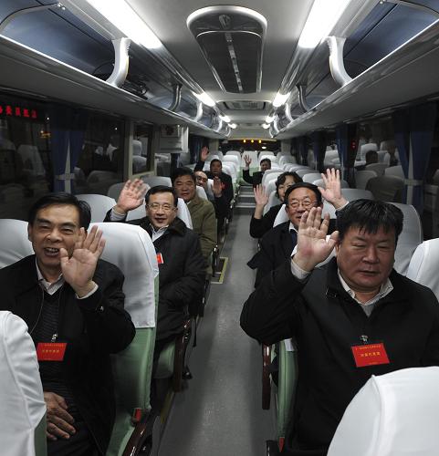 3月2日晨,来自河南省的全国人大[QuanGuoRenDa]代表[DaiBiao]乘坐K180次列车抵达北京[BeiJing]西客站,成为首批抵京参加十一届全国人大[QuanGuoRenDa]四次会议的京外代表[DaiBiao]。这是代表[DaiBiao]们乘车前往驻地。新华社[XinHuaShe]记者[JiZhe] 谢环驰 摄