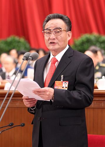 十一届全国人大四次会议[HuiYi]在京闭幕 批准[PiZhun]政府工作报告[BaoGao]、“十二五”规划纲要、 全国人大常委会工作报告[BaoGao]及其他重要报告[BaoGao] 3月14日,第十一届全国人民代表大会第四次会议[HuiYi]在北京人民大会堂举行闭幕会。 新华社记者 谢环驰 摄 新华社北京3月14日电 第十一届全国人民代表大会第四次会议[HuiYi]在批准[PiZhun]政府工作报告[BaoGao]、“十二五”规划纲要、全国人大常委会工作报告[BaoGao]及其他重要报告[BaoGao],圆满完成各项议程后,14日上午在人民大会堂闭幕。 3月14日,第十一届全国人民代表大会第四次会议[HuiYi]在北京人民大会堂举行闭幕会。吴邦国主持闭幕会并讲话。 新华社记者 兰红光 摄 闭幕会由大会主席团常务主席、执行主席、全国人大常委会委员长吴邦国主持。 胡锦涛、温家宝、贾庆林、李长春、习近平、李克强、贺国强、周永康等和大会主席团成员在主席台就座。 上午9时,吴邦国宣布大会开始。 会议[HuiYi]表决通过了关于[GuanYu]政府工作报告[BaoGao]的决议[JueYi]。决议[JueYi]指出,会议[HuiYi]高度评价“十一五”时期我国经济社会发展取得的巨大成就,充分肯定国务院过去一年的工作,同意报告[BaoGao]提出的“十二五”时期的主要目标任务和2011年的工作部署,决定批准[PiZhun]这个报告[BaoGao]。 会议[HuiYi]表决通过了关于[GuanYu]国民经济和社会发展第十二个五年规划纲要的决议[JueYi]。决议[JueYi]指出,会议[HuiYi]同意全国人大财政经济委员会的审查结果报告[BaoGao],决定批准[PiZhun]这个规划纲要。会议[HuiYi]要求,要认真实施“十二五”规划纲要,高举中国特色社会主义伟大旗帜,以邓小平理论和“三个代表”重要思想为指导,深入贯彻落实科学发展观,适应国内外形势新变化,顺应各族人民过上更好生活新期待,以科学发展为主题,以加快转变经济发展方式为主线,深化改革开放,保障和改善民生,巩固和扩大应对国际金融危机冲击成果,促进经济长期平稳较快发展和社会和谐稳定,为全面建成小康社会打下具有决定性意义的基础。 会议[HuiYi]表决通过了关于[GuanYu]2010年国民经济和社会发展计划执行情况与2011年国民经济和社会发展计划的决议[JueYi],决定批准[PiZhun]关于[GuanYu]2010年国民经济和社会发展计划执行情况与2011年国民经济和社会发展计划草案的报告[BaoGao],批准[PiZhun]2011年国民经济和社会发展计划;表决通过了关于[GuanYu]2010年中央和地方预算执行情况与2011年中央和地方预算的决议[JueYi],决定批准[PiZhun]关于[GuanYu]2010年中央和地方预算执行情况与2011年中央和地方预算草案的报告[BaoGao],批准[PiZhun]2011年中央预算。 会议[HuiYi]经表决,通过了关于[GuanYu]全国人大常委会工作报告[BaoGao]的决议[JueYi]。决议[JueYi]指出,会议[HuiYi]高度评价全国人大常委会过去一年的工作,同意报告[BaoGao]提出的2011年的主要任务,决定批准[PiZhun]这个报告[BaoGao]。 会议[HuiYi]表决通过了关于[GuanYu]最高人民法院工作报告[BaoGao]的决议[JueYi]、关于[GuanYu]最高人民检察院工作报告[BaoGao]的决议[JueYi],决定批准[PiZhun]这两个报告[BaoGao]。 会议[HuiYi]表决通过了关于[GuanYu]确认全国人大常委会接受倪岳峰辞去全国人大常委会委员职务的请求的决定。倪岳峰同志因另有任用,依照法律规定,向全国人大常委会提出了辞职请求。 大会完成各项议程后,吴邦国发表讲话。 上午9时27分,全场起立,高唱国歌。吴邦国宣布:第十一届全国人民代表大会第四次会议[HuiYi]胜利闭幕。