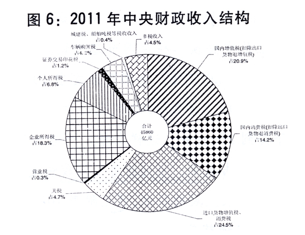 图6:2011年中央[ZhongYang]财政[CaiZheng]收入[ShouRu]结构。新华社发