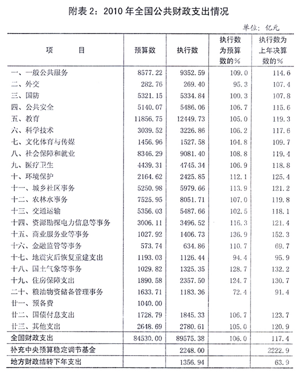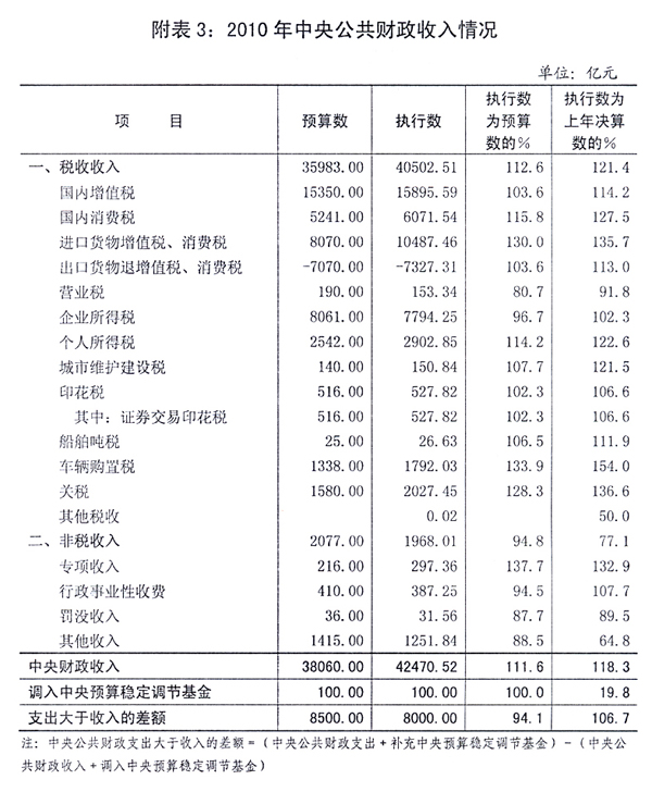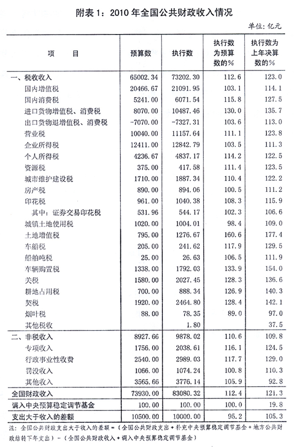 一、2010年中央[ZhongYang]和地方预算[YuSuan]执行情况