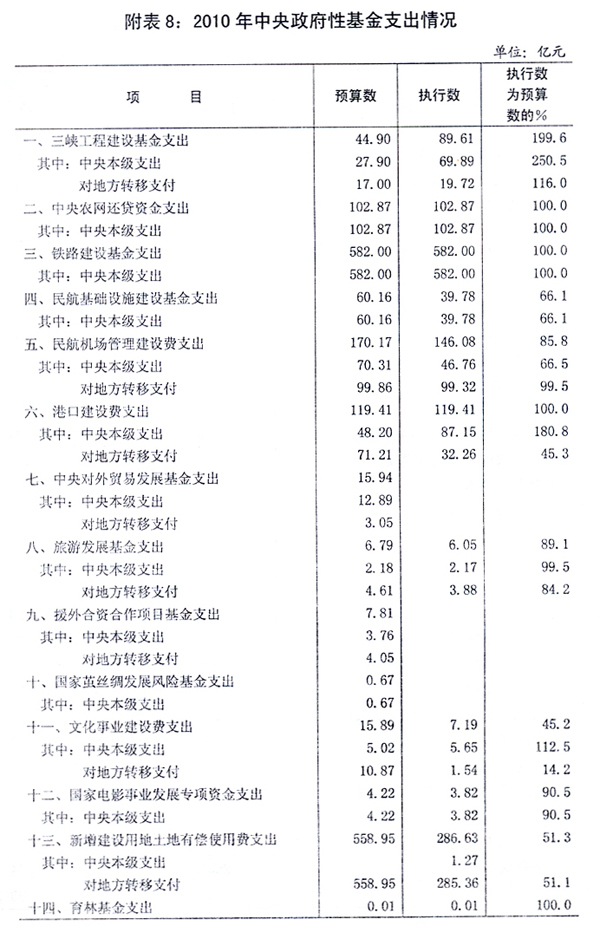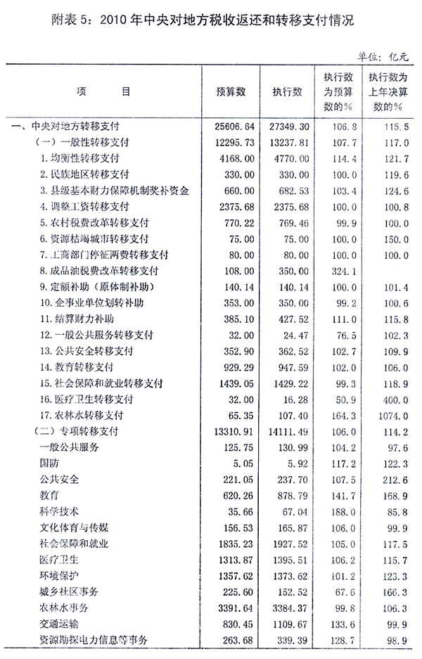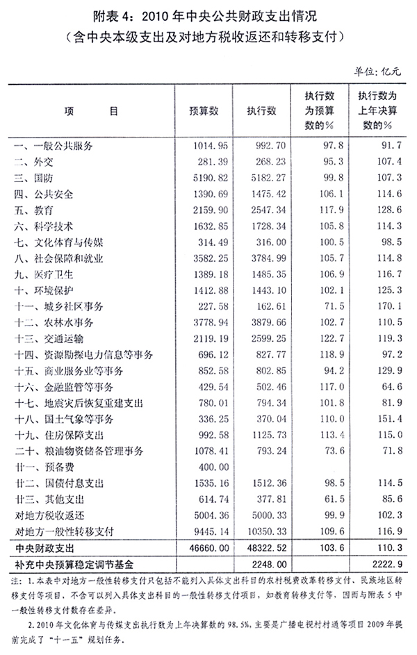 关于2010年中央[ZhongYang]和地方预算[YuSuan]执行情况