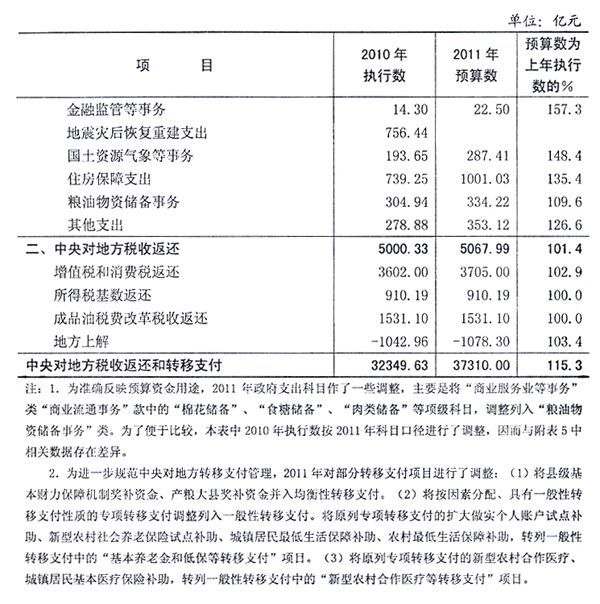 与2011年中央[ZhongYang]和地方预算[YuSuan]草案的报告