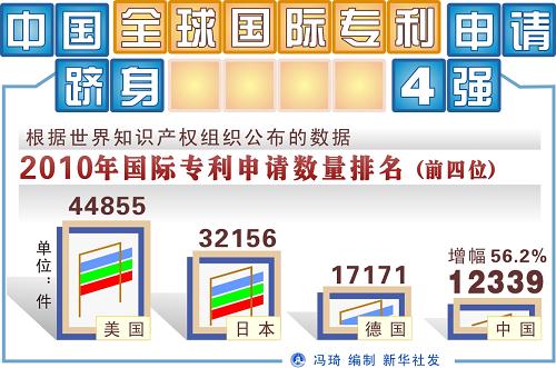 图表:中国跻身全球国际专利[ZhuanLi]申请4强 新华社发