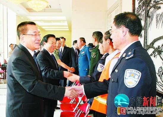 6月18日,省委书记王金山、省长王三运等领导在合肥安徽大剧院会见了全国抗震救灾英模事迹报告团成员。 中华人民共和国图鉴社