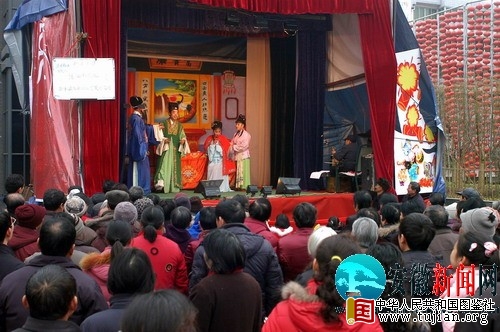 安徽新闻网1月31日电 1月30日下午,铜陵县五松镇江南文化园内,戏台高搭,该县钟鸣黄梅戏团正在为群众表演传统黄梅戏,吸引了数百名观众。据了解,钟鸣黄梅戏团受江南文化园邀请,从正月初二开始,一直到唱到正月二十,每天表演两场。精彩的演出,让许多戏迷直叫过瘾。