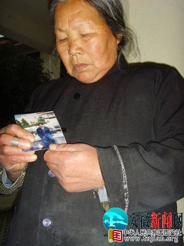 死者母亲张玉兰拿着儿子生前的照片,十分悲痛。 tujian.org
