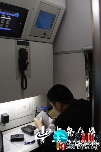 在7号车厢的监控室里,记者见到了随车机械师李枫,他正在小小的工作间里通过微电脑显示屏密切关注着列车的动态。李枫说他有两大主要任务:监控列车技术运行状态,关注行车有没有问题;查看行车故障。记者看到这个工作间主要由一个工作桌和一排电脑显示屏组成,看似简陋,却宛若全车的心脏测听器,是与动车司机一起承担着列车顺利、高速运行的核心部位。 tujian.org