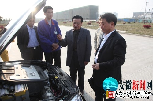 安徽新闻网4月9日电 4月9日,原合肥市政协主席周富如、中新社安徽分社社长顾立军一行莅临安徽合肥华生汽车有限公司参观考察中国第一辆纯电动轿车。
