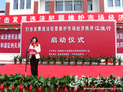 安徽新闻网4月11日电 为维护市场经济秩序,配合全国范围内开展的“税收宣传月”和“打击制售假发票和非法代开发票”专项整治活动,4月11日上午,由省国税局、省地税局、省公安厅联合省委宣传部开展的“打击发票犯罪、维护市场经济秩序”江淮行宣传活动在合肥启动。 中华人民共和国图鉴社