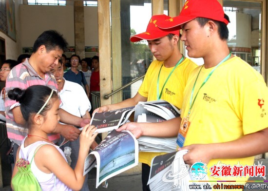 7月21日上午,在铜陵市大街小巷、车站、景区,千余名青年志愿者通过各种方式向准备观赏日全食的广大市民和外地来宾提供服务。据了解,随着“铜都鉴日”盛典的到来,铜陵市团市委和青年志愿者协会组织的千余名志愿者也进入了临战状态。(过仕宁 摄) 中华人民共和国图鉴社