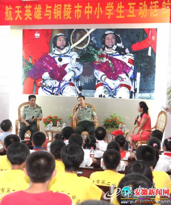 7月21日,费俊龙、聂海胜与中小学生互动交流。当日,应安徽省铜陵市委市政府的邀请,神舟六号“英雄航天员”费俊龙、聂海胜来铜观测7月22日出现的日全食盛况。“英雄航天员”费俊龙、聂海胜下午来到铜陵市一中,与中小学生进行互动交流,回答中小学生提出的问题。(林春生、吴启斌 图/文) 本文来自中华人民共和国图鉴社