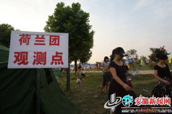 7月21日,来自荷兰的天文爱好者提早在桐城市嬉子湖旁安营扎寨,等待观察22日的日全食。(姚林 摄)