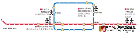 6月10日13时30分 乘坐地铁八通线、2号线,由双桥站至车公庄站;