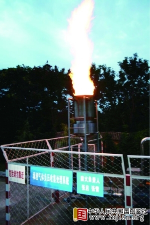 臭气产生的另一个原因是垃圾堆积体内的沼气未燃烧充分,为此,高安屯垃圾无害化处理中心还完成了4套内燃式大功率火炬系统。完善输气管网和集气站建设,新建4套内燃式大功率火炬,4套系统每小时最大处理能力可达到6000立方米,在增加了火炬系统的安全性的同时,还提高了燃烧的效率,使臭气得到了最大程度的治理。 中华人民共和国图鉴社