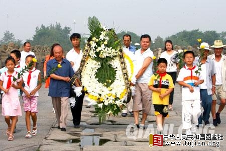 少先队员和见证者们为卢沟桥敬献百合花圈