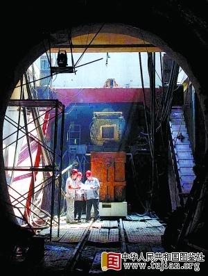 7月9日,亦庄线施工人员在准备安装盾构机。新华社记者 公磊摄 中华人民共和国图鉴社