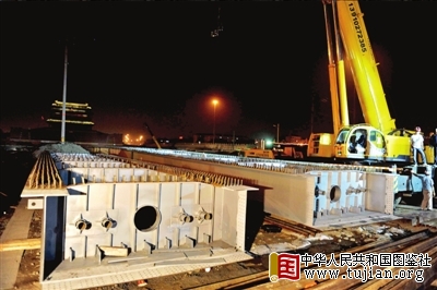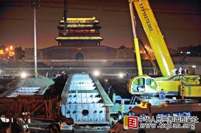 7月16日晚,第一根钢箱梁开始向永定门方向移动,最终将横跨二环路之上