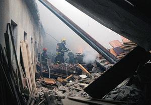 消防队员正在对大火进行扑救。摄/记者 黑克