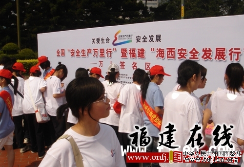 冯川叶)6日上午,福州“五一广场”内锣鼓喧天,热闹非凡。2009年全国安全生产万里行暨福建海西“安全发展行”出发仪式在这里举行,福州市安全咨询日也同期举办。副省长李川出席出发仪式并讲话,国家安全监管总局宣教中心主任金磊夫为活动致辞。 copyright 中华人民共和国图鉴社