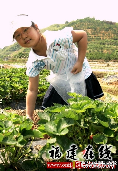 5月29日,一名小朋友在福州市闽侯县龙台山生态园采摘草莓。新华社发(金怡摄)
