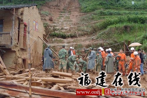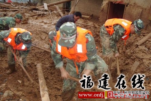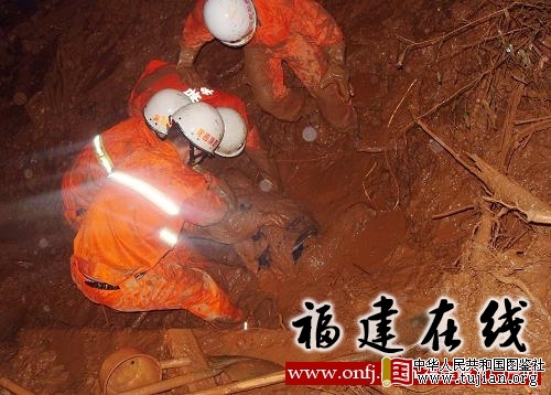 5月29日凌晨,消防队员搜救被埋人员。5月28日晚,由于当地普降大雨,福建龙岩市长汀县发生一起山体滑坡事故,造成一民房内的3人被埋。29日上午,3人遗体被找到。