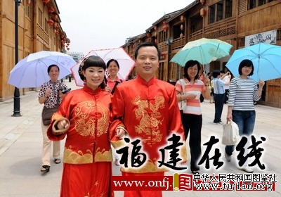 5月29日,一对身穿古装的恋人走在榕城古街——福州南后街上。