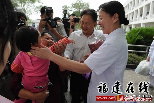 福建省卫生厅副厅长陈秋立到医院欢送患者,并对医务人员的辛勤工作表示感谢。 (省卫生厅新闻办)