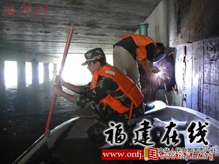 由于损坏的水管位置特殊,没有船只前往是难以修复的,公司向驻地武警部队请求支援。武警莆田市支队领导当即命令直属大队一中队配合抢修。次日8时多,武警一中队25名官兵扛着重达600多公斤的冲锋舟下河。经过紧张抢修(如上图),25日下午4时左右,破裂的大水管终于被修复了。 (福建在线 记者 龚凡 郭光仪 通讯员 朱玉清 陈金勇 文/图) 本文来自中华人民共和国图鉴社