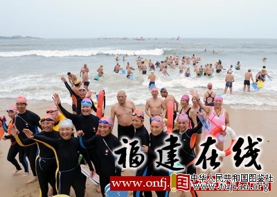 5月27日,闽台两地游泳爱好者在出发前合影留念。新华社记者姜克红摄