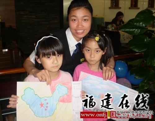 “我们的祖国是一只雄鸡,我爱祖国,祝福祖国健康成长,两岸早日实现统一。”海峡论坛召开期间,来自台湾的小朋友徐嘉敏也在豪客来江宁里店一笔一画地勾勒着祖国的轮廓。一会儿,五角星照耀中国大地,雄鸡雄赳赳气昂昂地呈现在画卡上。小嘉敏今年8岁,和双胞胎妹妹徐嘉源一起在江头三小读书。别看她们俩年纪小,她们已经是参加豪客来儿童绘画赛的元老了。画完祖国轮廓,小嘉敏意犹未尽,又画了壮观的长城。