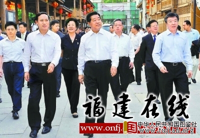 5月14日,中共中央政治局常委、全国政协主席贾庆林参观福州“三坊七巷”。 记者