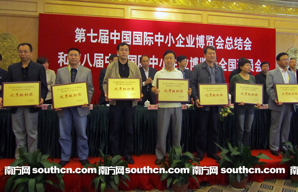 与会领导为获得第七[DiQi]届中[JieZhong]博会先进单位和个人荣誉的代表颁奖 织梦好,好织梦