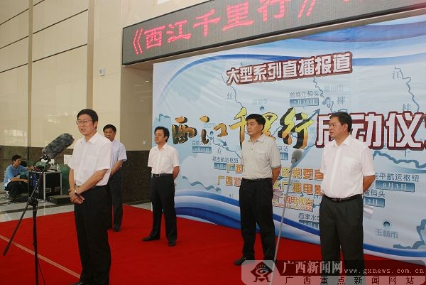 自治区党委常委、宣传部部长沈北海宣布《西江千里行》报道启动。广西新闻网记者 邓昶摄