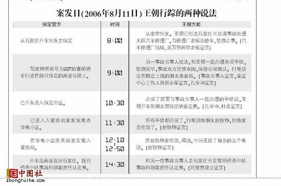 案发日(2006年8月11日)王朝[WangChao]行踪的两种说法