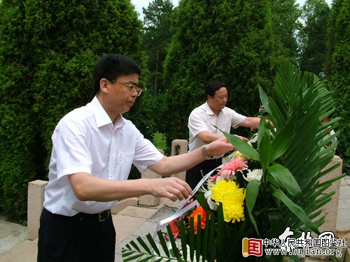 省委常委、宣传部长衣俊卿和牡丹江市委书记徐广国向杨子荣烈士墓敬献花篮。