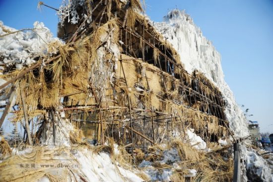 发生[FaSheng]脚手架垮塌砸埋工人[GongRen]事件的大型冰瀑冰景。东北网[DongBeiWang]记者[JiZhe] 陈静 摄